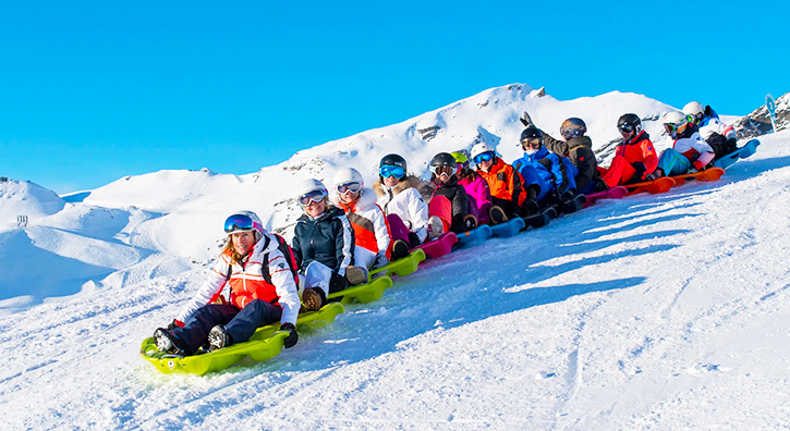 Snakegliss is one of the winter sports that have emerged in recent years. It is offered at certain ski resorts in France. The concept is simple: up to 12 sleds are linked together to form a snake-like train. The whole group powers the ride, so it requires team spirit – making this activity perfect for friends or family! For about an hour, you can use reserved slopes or ski runs after they close, allowing you to enjoy a unique view of nature at sunset or even take part in night rides.