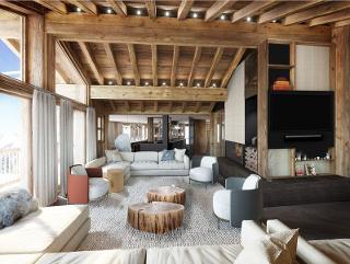 Residence Grandes Alpes Empyrée, located in the very centre of Courchevel 1850. Closest 5 star hotel to the snowfront, leading to the Jardin Alpin, Verdons and Chenus ski lifts. Gateway to the totality of the Trois Vallées skiing area, and especially to the Emile Allais slalom stadium. The Grandes Alpes hotel includes a wellness area, with a lounge and minibar, a sauna and a massage table. The apartment Grandes Alpes Empyrée is 250m2 and can host up to 10 people.