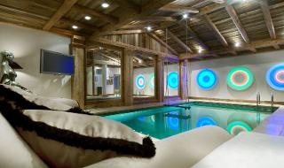the town centre is 700 m. the shops are 800 m. the train station is 25 Km. Luxurious chalet located in the renowned Bellecôte neighborhood. Private hamlet for a private stay. At the start and end of the Bellecôte ski piste. 600m2 surface area sheltering; 6 bedrooms with ensuite bathrooms, a sauna, hammam, swimming pool, a playroom and a massage room.