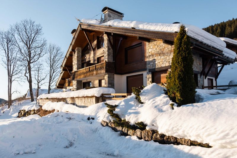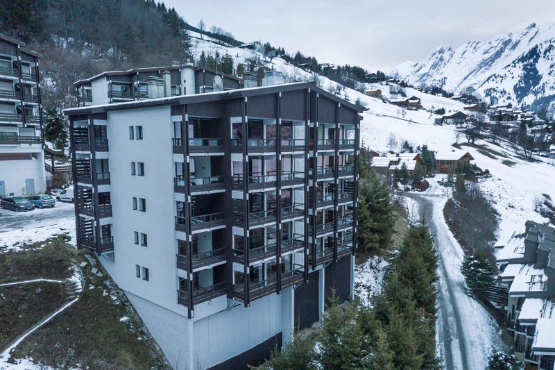 Main floor: Hall - WC - Wardrobe - Corridor access to bathroom (3m²): bathtub, WC, towel dryer - Bedroom 1: Beds, wardrobe, west-facing French window leading to balcony, mountain view - Bedroom 2: Beds, wardrobe, north window, chalet view - Living room (33m²): Lounge area: 2 sofas, armchairs, coffee table, TV - Dining area with fully equipped kitchen: Cooking plate, dishwasher, washing machine (dryer), oven, microwave, refrigerator, Dolce Gusto coffee machine, raclette machine - table and chairs, large window and French door access to west balcony, mountain view - Bedroom 3: beds, wardrobe, north window, chalet view - Shower room (2.50m²): Shower, WC, towel dryer.