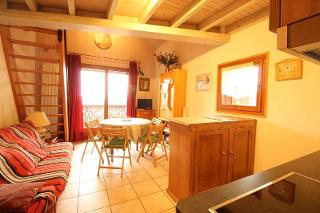 Located just 300 meters from the ski slopes and 50 meters from shops, this duplex apartment offers a total surface area of 46 m² (33 m² + 13 m² mezzanine 1.80 m ceiling height). It is on the 2nd floor of a residence without a lift and features a south-facing balcony with lovely open mountain views.