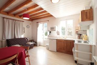 The apartment sleeps up to 4 guests with a double sofa bed in the living room and bunk beds in the entrance area (upper bunk not suitable for children under 6).