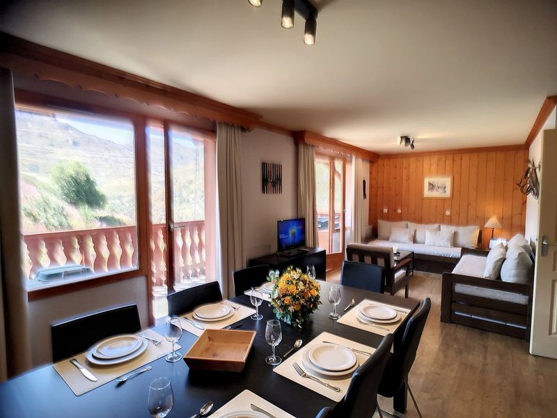 It has a southeast facing balcony offering a beautiful panoramic view of the mountains. The residence is ideally situated at the foot of the slopes, in immediate proximity to the Piou-Piou village and the centre of the Les Bruyeres area - shopping facilities, cinema, swimming pool, spa, bars, and restaurants. For skiers, you will appreciate immediate access to the vast ski area of 3 Vallees via the Les Bruyeres chairlifts.
