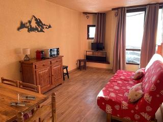 Très joli studio situé au centre de la station, départ et arrivée skis aux pieds, 4ème étage avec ascenseur, comprenant une entrée avec 1 lit mezzanine 1 place et 1 banquette convertible 2 places en-dessous, un séjour avec 1 banquette convertible 2 place, un coin cuisine équipé ouvert sur le séjour, une salle d'eau et WC indépendants. Parquet flottant dans tout le logement. Balcon Exposition Sud/Est vue sur les pistes. Accès direct aux animations, activités et commerces. Animaux non autorisés dans le studio. La remise des clés se fera à l'agence LOGEVAC.