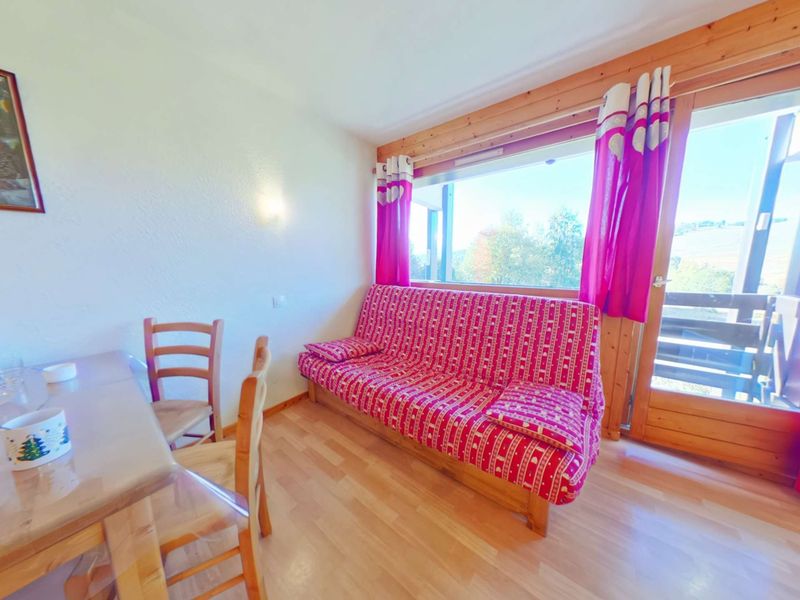 Residence in the lower station close to the chairlifts of Legette and Carrets. The residence is south-facing opposite the Beaufortain massif. Studio apartment with cabin alcove located on the 1st floor of the residence without a lift (1 floor to climb), south-oriented with a balcony.
