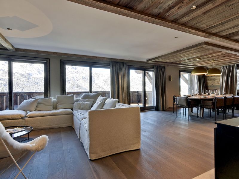 On the fourth floor of a newly built high-standard residence, it offers stunning views over the ski area and the peaks. It boasts a large living room with a separate kitchen, a bar, a TV room, and a fireplace.