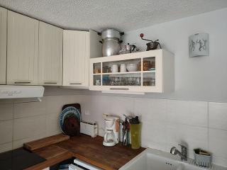 6 beds. Stay: 1 clic clac. TV. Bedroom 1: 2 single beds. Bedroom 2: 1 double bed. Kitchen area: 3 induction hobs, large fridge with freezer section, microwave, Senseo coffee maker, kettle, toaster, dishwasher Bathroom: Shower, washing machine. Separate WC.