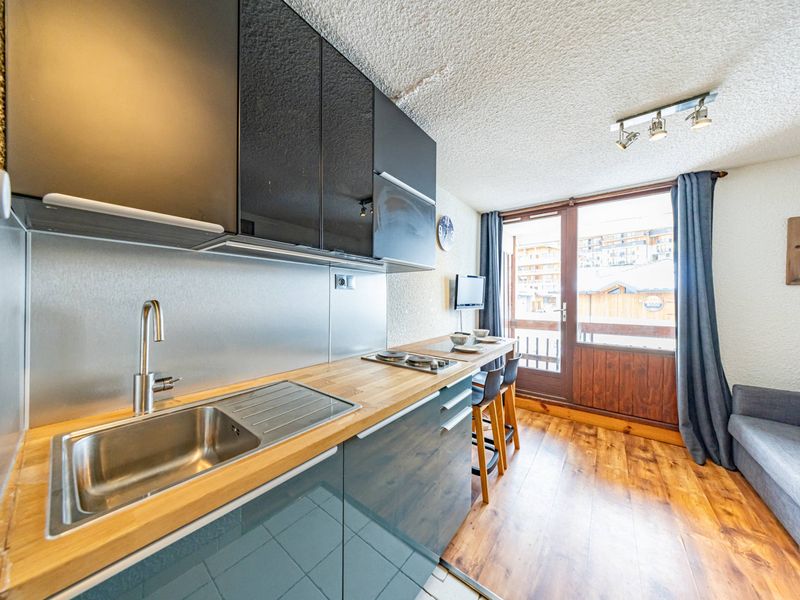 22sqm studio for 4 people with south-facing balcony/veranda, at the foot of the slopes and close to the shops.