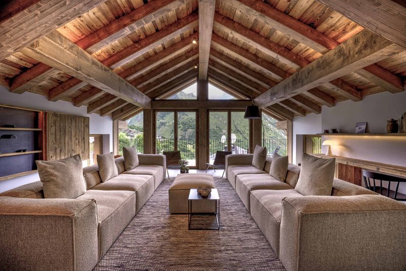 *On the second floor: A spacious living room with a large cathedral lounge with large glass openings that offers a breathtaking view of the peaks of the Belleville valley. A dining area, a kitchen (independent) and access to the terraces and balcony complete this level.