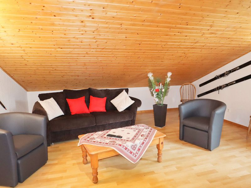 - a TV area with armchairs, convertible sofa (140), a desk space, wardrobe, closet, and storage space for your luggage, 2 windows facing north
