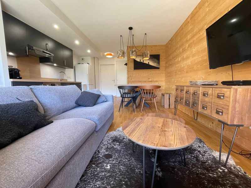 In Samoens, in a quiet area located 1.5 km from the village, duplex apartment with 2 bedrooms in a semi-detached house built in 2010.