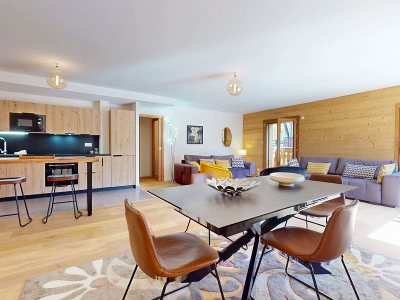- A sitting area (16,3m 2, 4fenêtres, East/West, mountain-fields-view chalets) with wood stove, TV,